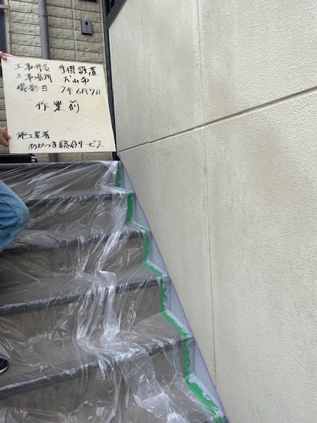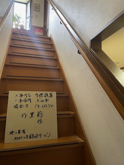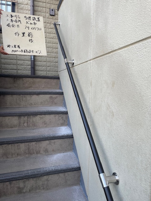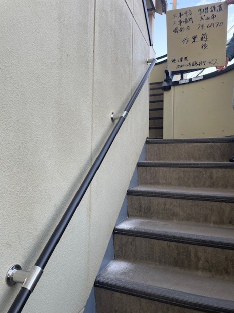 現場名: 犬山市依頼内容: 階段部に手摺を設置のご依頼を頂き、実施いたしました。工事名: 手摺設置工事★設置前★★設置後★